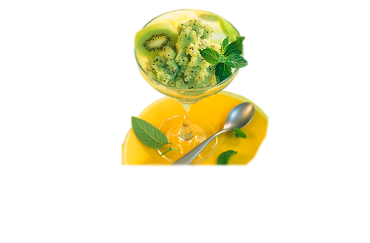 Nel frattempo preparate un frullato con i kiwi e il succo di limone, che aggiungerete allo sciroppo una volta raffreddato. Ora versate il composto in un contenitore di alluminio o di acciaio e mettetelo in congelatore per circa mezz’ora.