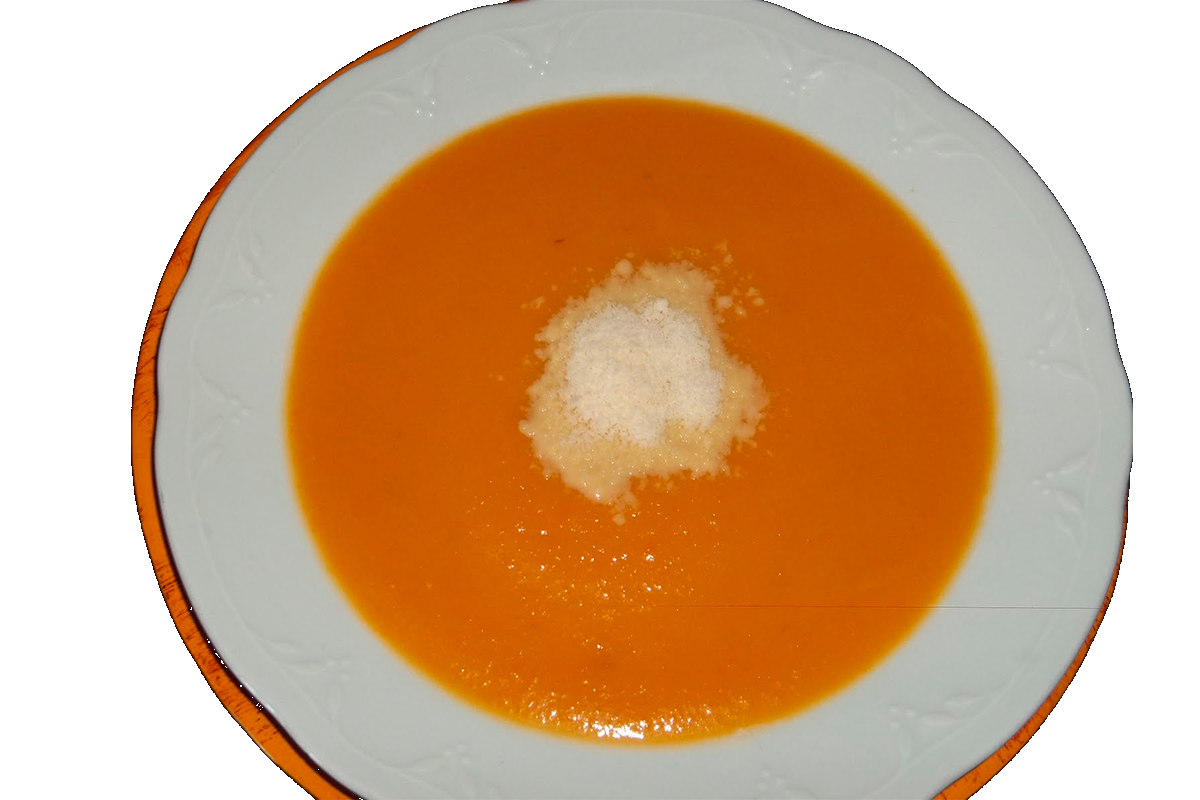 In una casseruola mettete a soffriggere in un po’ d’olio la cipolla e lo zenzero. Spellate e pulite i peperoni, togliendo i semi, quindi passateli al frullatore ad immersione. Versate la crema di peperoni, il brodo, l’aglio intero, un po’ di sale nella casseruola con il soffritto di cipolla.